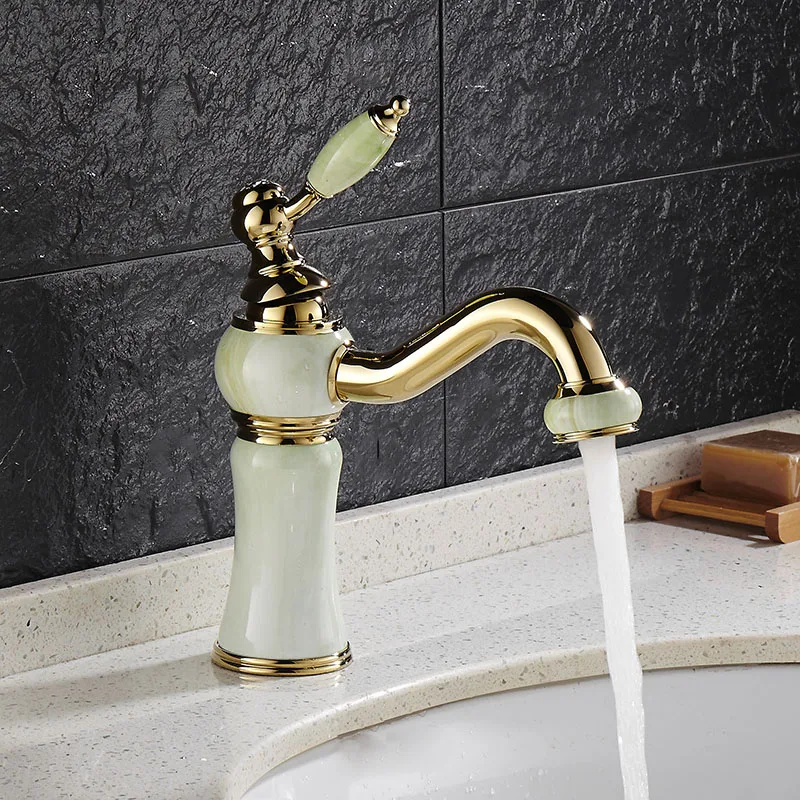 المنتجات ذات الصلة ل Bathroom Vanities و اليورو الذهب تصفيح الفاخرة حوض الحمام الحنفية واحدة مقبض الغرور بالوعة خلاط مياه الحنفية النحاس و اليشم حوض المغسلة الحنفية
