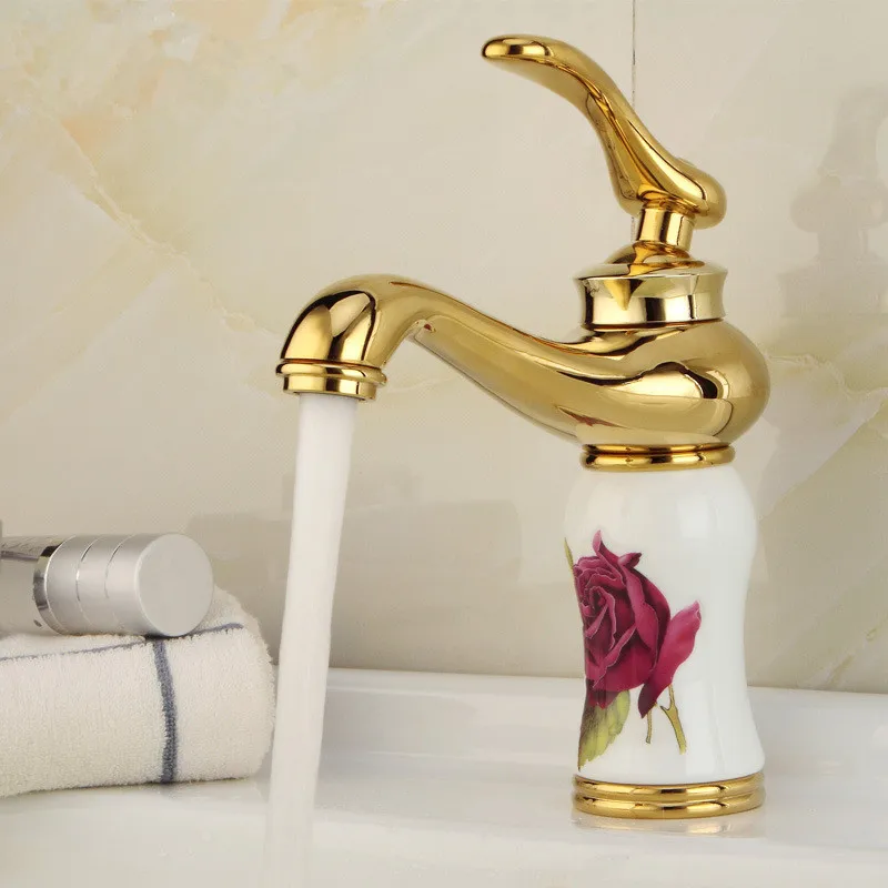 المنتجات ذات الصلة ل Bathroom Vanities و اليورو الذهب تصفيح الفاخرة حوض للحمام صنبور واحدة مقبض الغرور بالوعة خلاط صنبور الماء النحاس و اليشم حوض بالوعة صنبور