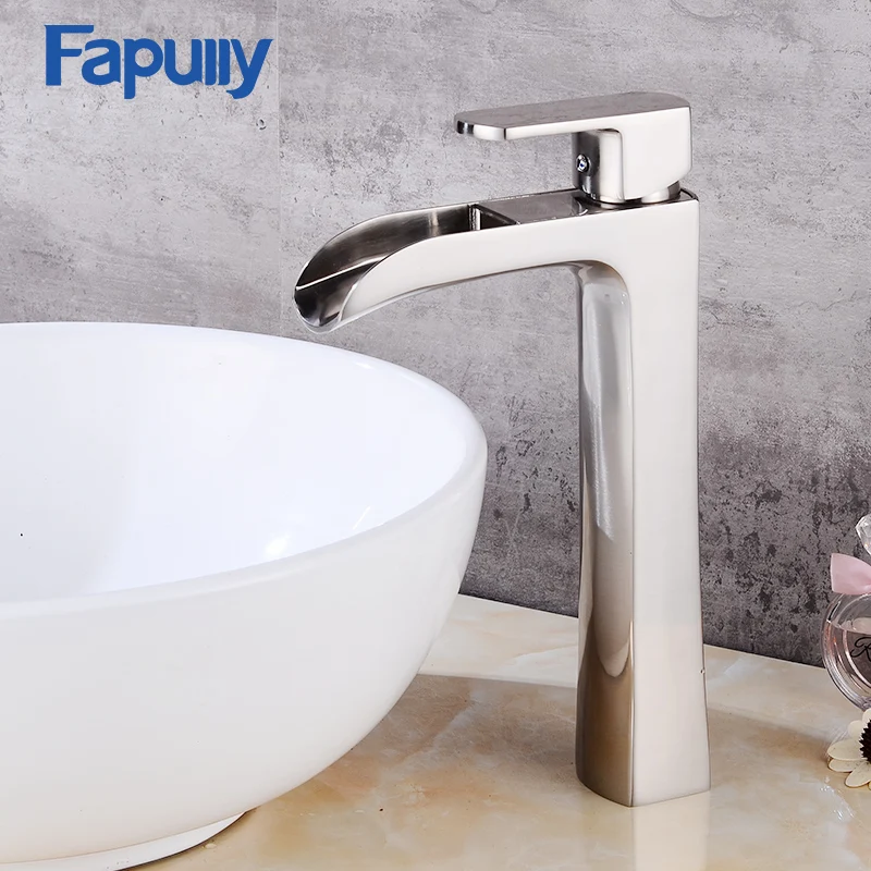 المنتجات ذات الصلة ل Bathroom Vanities و Fapuly الحمام بالوعة صنبور فرشاة من الفولاذ المقاوم للصدأ النيكل شلال صنبور الحمام الغرور حوض حمام المصارف صنبور حوض خلاط 144-22N